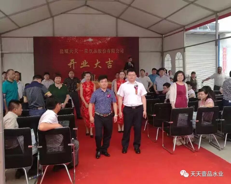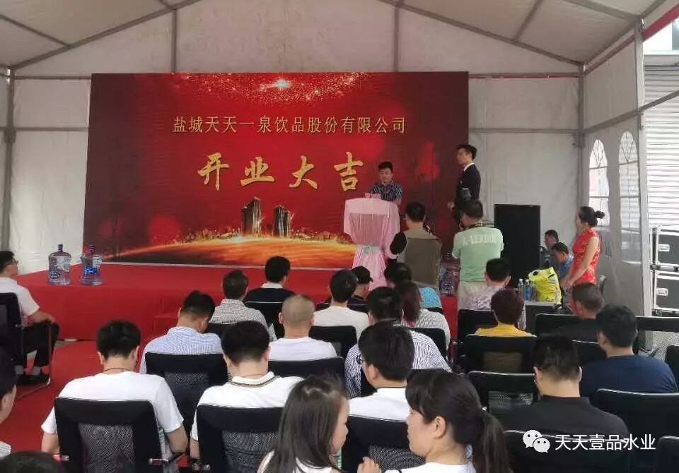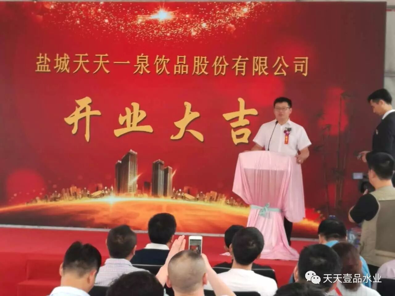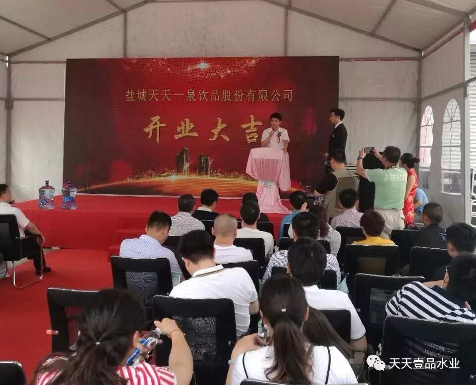 2017年6月25日,天天一泉国际企业集团的又一个弱碱山泉水厂诞生,年产五万吨天天一泉弱碱山泉水项目——江苏盐城水厂举行盛大开业庆典! 随着震天的鞭炮声,盐城市的各级领导及嘉宾朋友带着对天天一泉弱碱山泉水的期待和对水厂的祝贺来到了庆典现场。 天天一泉国际企业集团副总裁、北京天天一品环保科技有限公司总经理吕海峰先生,北京天天一品环保科技有限公司副总经理战利超先生,北京天天一品环保科技有限公司招商部经理曹文军先生,作为集团代表参加了此次庆典。 盐城天天一泉股份有限公司总经理丁金春先生致欢迎词 丁总对到场的领导及嘉宾朋友表示衷心的感谢,盐城天天一泉股份有限公司之所以能够快速顺利的建成离不开大家的支持和帮助,更离不开集团公司的大力扶持。公司会对每一位员工进行系统的培训,并严把产品质量关,让盐城人喝到真正安全放心的大桶水! 天天一泉国际企业集团副总裁吕海峰先生发言 吕总作为盐城当地人,感恩家乡的每一寸土地,多么希望可以尽自己的微薄之力回报家乡。而今,能够把天天一泉的健康好水引进盐城,保障了家乡人的饮水安全,是令他非常高兴的一件大事,在今后的管理运营方面,吕总也会尽全力去帮扶。 北京天天一品环保科技有限公司副总经理战利超先生发言 战总在水与健康方面是一位实战家,经常奔走于各个地区,对水知识了解甚多,典礼现场为大家简单介绍了健康饮水的常识,以及饮用天天一泉弱碱山泉水对身体的益处。 盐城水厂的工作人员组织到场的领导及嘉宾朋友参观桶装水生产车间 盐城水厂作为年产五万吨的上规模水厂,不仅具备了专业的生产设备,配套设施更是准备充分,一辆辆崭新的送水车,预示着盐城市天天一泉桶装水红红火火的市场前景。 真情的六月,火红的六月,属于天天一泉人的六月,让我们一起祝贺盐城天天一泉水厂开业大吉! 下一篇“七一” 祭铁军